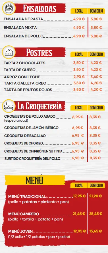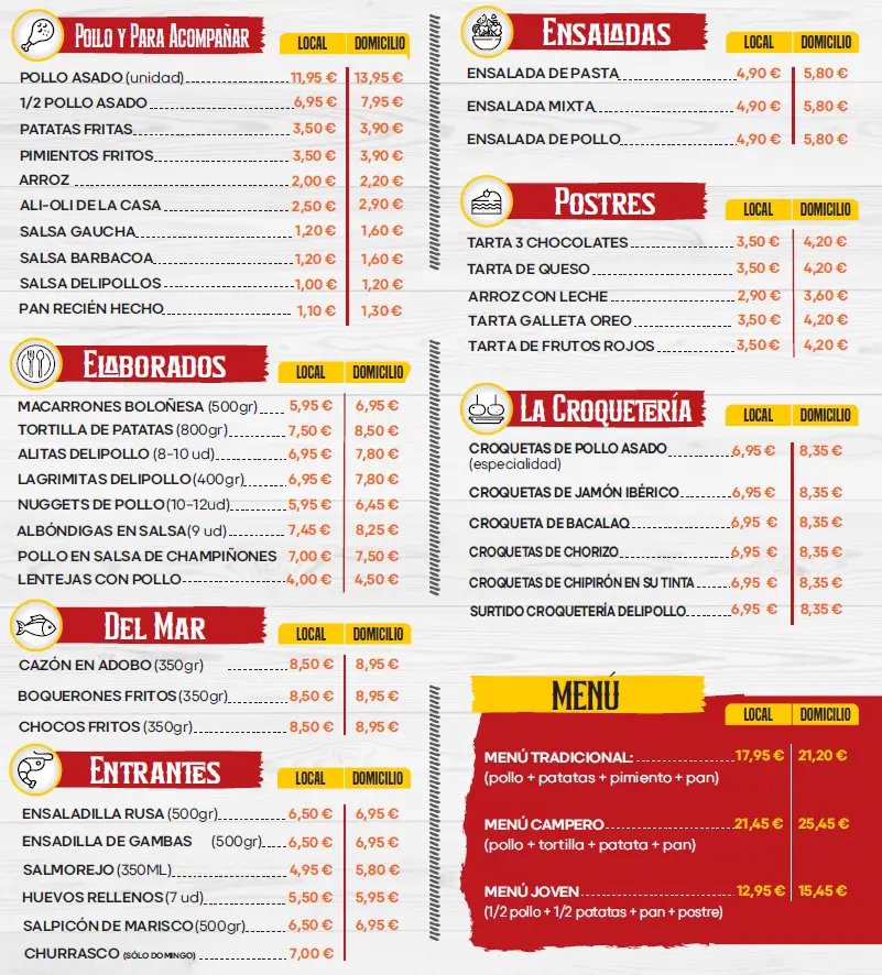 Entrega a domicilio disponible todos los días de la semana de 11:00 a 15:30 y de 20:00 a 22:30h